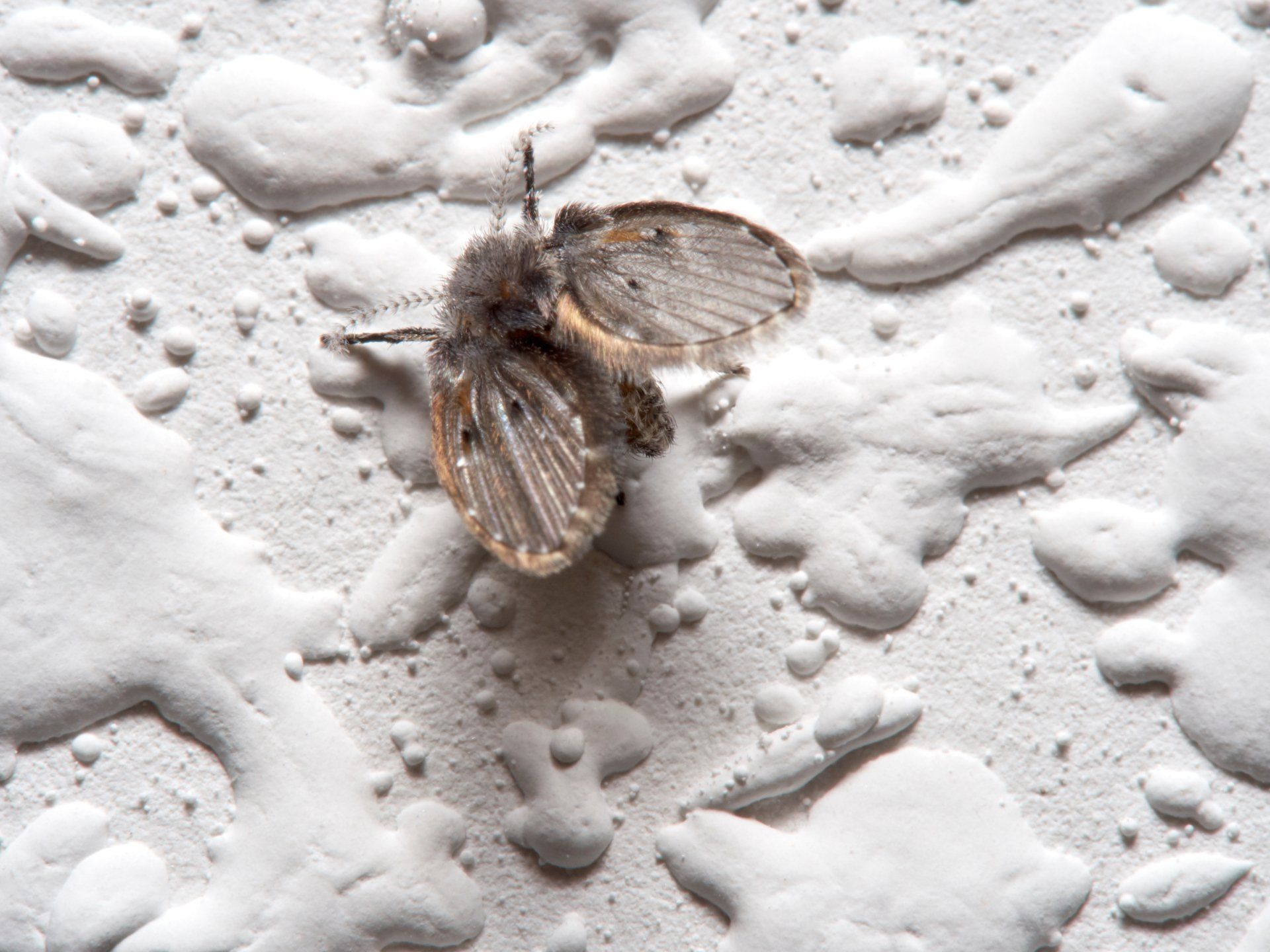 La mouche des drains est un insecte holométabole de l’ordre des diptères et de la famille des psychodidés (Psychodidae). C’est une mouche de petite taille (habituellement 1 à 5 mm en longueur). Elle est couverte de poils gris argentés lui donnant pratiquement l’allure d’un petit papillon. Ses ailes sont plutôt larges et oblongues et ne lui permettent pas de voler sur de longues distances.